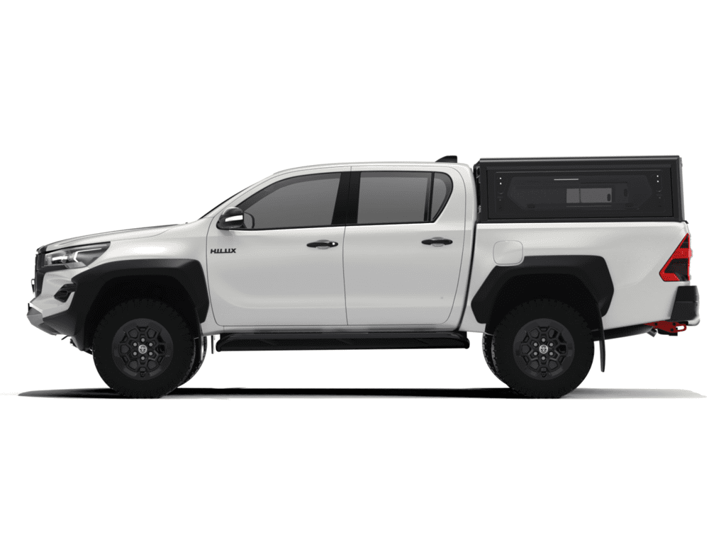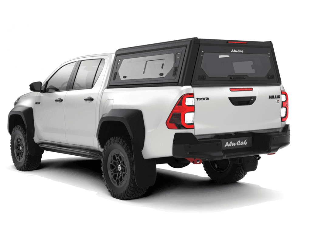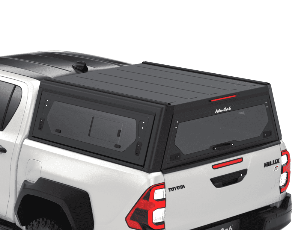 Az Alu-Cab Contour platódoboz Toyota Hilux Revo 2016+ D/Cab járműhöz pontosan illeszkedő, zárható alumínium felépítmény: alacsony profil, alumínium tolóajtók, oldalsó ablakok és teljes tetőcsomagtartó-kompatibilitás. Ideális mindennapi és terepes vegyes használatra.